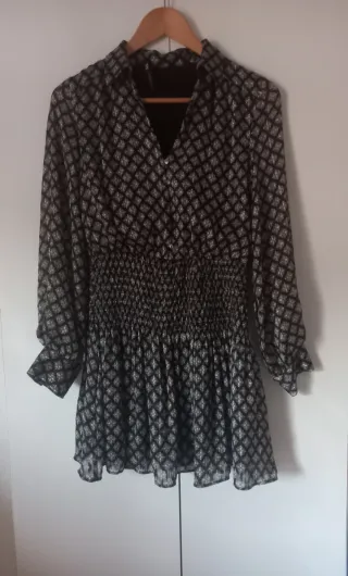 🌷 Precioso vestido babydoll con mangas semitransparentes, elástico en cintura, botones en pecho y forro -Sin usar (Nuevo) -Talla: XS (Corresponde a talla XS y S) -Material: 100% poliéster (Primera imagen de referencia)
