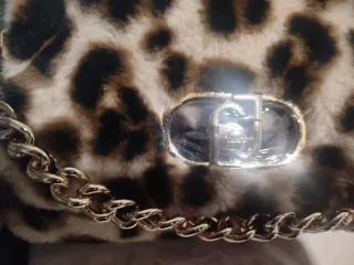 Bolso pequeño de pelo con estampado animal print y detalles en cadena dorada. Nuevo sin estrenar con etiquetas y su bolsa - Cierre con broche metálico. - Asa de cadena dorada. - Tacto muy suave.