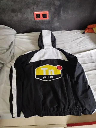 Chándal deportivo Nike TN con un diseño moderno y llamativo. - Combinación de colores negro y blanco. - Capucha integrada. - Cremallera frontal completa. - Bolsillos laterales con cremallera.