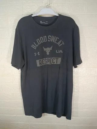 Camiseta Under Armour Blood Sweat Respect R159. Grado B; sin roturas ni manchas pero con desgaste debido al lavado. Talla L larga 56 X 75. NO HACEMOS ENTREGAS EN MANO. Los grados del textil son A, B y C, independientemente del grado que indiquemos en el estado de Wallapop. Siendo A; Muy bueno, B; Bueno, C; Aceptable. Cualquier defecto se hará constar. El textil se fotografía y empaqueta para ser enviado por lo que puede llegar arrugado y necesitar ser lavado.