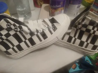 Zapatillas de la marca Versace con un diseño a cuadros llamativo. Están a estrenar. - Diseño a cuadros en blanco y negro. - Cierre con cordones.