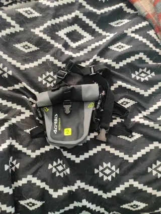 ¿Dónde poner todas esas pequeñas cosas que siempre quieres tener contigo y al alcance de la mano en la moto? Con el bolsillo de pierna Acerbis *No water trip* estarás perfectamente equipado, ya que está fabricado con un robusto material de PVC que lo hace impermeable, junto con las costuras selladas y el cierre enrollable. ¡No entrará ni una gota! Fijación con doble correa ajustable Costuras externas soldadas Interior impermeable Para guardar objetos pequeños, como smartphones (máx. 17 x 11 cm) Práctico y flexible: especialmente útil en días de lluvia Capacidad de 2 litros Nuevo a estrenar. Sólo tratos en mano No envíos