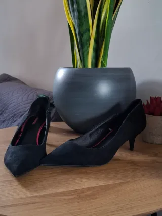 Elegantes tacones de Primark con un diseño moderno. - Tira transparente en la parte delantera. - Correa ajustable al tobillo con hebilla dorada. - Tacón grueso y cómodo.