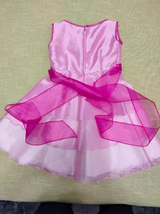 Vestido de fiesta para niña con un largo de 60cm. Ideal para ocasiones especiales. - Tejido satinado brillante. - Cinturón decorativo en tono fucsia. - Lazos de organza en la falda.