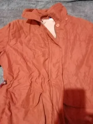 Chaquetón de mujer en tono marrón anaranjado. Diseño con cuello alto y cierre de cremallera. - Cierre de botones. - Cintura ajustable con cordón. - Bolsillos frontales. -Solo envío a partir de 4 prendas de mí perfil y te regalo la 5