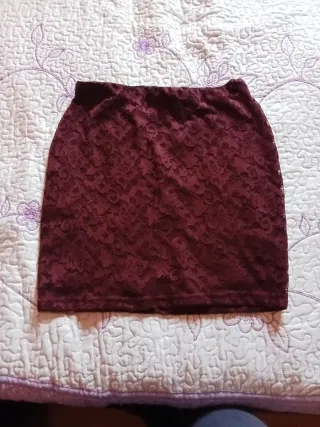 Minifalda de encaje en color vino. Un básico con un toque elegante. - Diseño de encaje. - Corte ajustado. -rojo vino -cintura elástica -NO ENVÍO