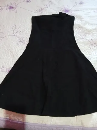 Vestido negro elegante, sin tirantes y con un diseño que realza la figura. - Corte ceñido en el torso. - Falda con vuelo. - Detalle de lazo en la parte superior. -NO ENVÍO