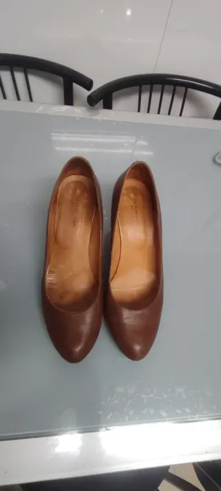 Elegantes zapatos de salón de piel, hecho en España. Tiene un pequeño roce en el tacón. Se ve en las fotos. Cualquier otra información que deseéis, podéis preguntar sin compromiso. - Material: Piel - Color: Marrón