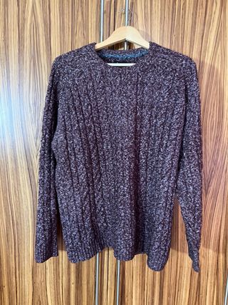 Jersey de punto con textura de trenzas en color burdeos. - Diseño de punto trenzado. - Cuello redondo.