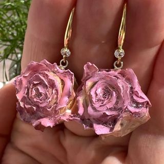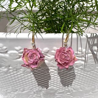 Pendientes únicos con una rosa natural preservada. Un toque de elegancia y naturaleza. - Cierre de anzuelo bañado en oro. - Detalle de circonita. - Rosa natural encapsulada.