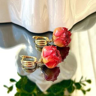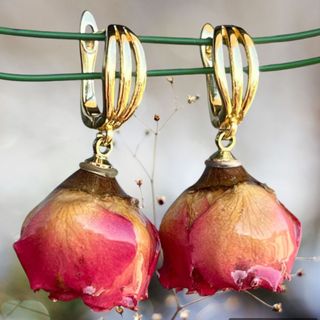 Los pendientes con colgante en forma de capullo de rosa natural resaltan la feminidad y la nobleza de su dueña. Son ligeros y elegantes, decorarán armoniosamente a cualquier chica y le brindarán un ánimo soleado. Las cerraduras de los pendientes están hechas de acero inoxidable dorado. 🎁Serán un regalo excelente para un cumpleaños.