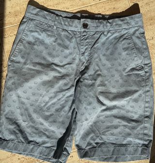 Pantalones cortos de vestir para hombre con un discreto estampado. - Diseño con cierre de botón y cremallera. - Bolsillos delanteros y traseros.