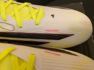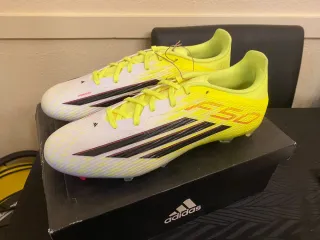 Botas de fútbol Adidas F50. - Diseño en blanco y amarillo. - Talla 46.