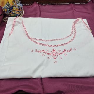 Preciosa camisola o camisón corto vintage original de los años 50. Confeccionado en algodón blanco de alta calidad, muy fresco y suave. Detalles del diseño: Bordado: Acabado festoneado en color amarillo en el cuello y las sisas. Monograma: Detalle bordado en el pecho con la letra "M" y motivos decorativos. Cierre: Se abrocha en los hombros con botones funcionales. Estilo: Mid-Century, retro, ideal para uso diario o coleccionistas de lencería antigua. Medidas: Contorno de pecho: 108 cm. Largo total: 85 cm desde el hombro hasta el bajo. Estado: La prenda está bien conservada para su edad. Nota: Tiene un pequeño agujerito en