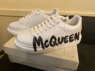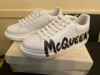 Zapatillas de diseño Alexander McQueen. - Color blanco con detalles en negro. - Talla 40.