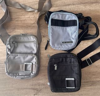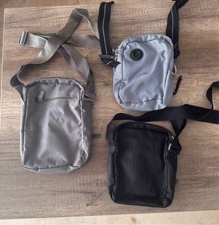 Conjunto de tres bolsos de la marca Dockers. - Dos bolsos en color gris. - Un bolso en color negro. - Cierre de cremallera. Escucho ofertas por el lote completo o de forma individual