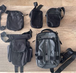 Conjunto de cinco bolsos EDC (Every Day Carry) de estilo táctico. Incluye varios modelos y tamaños para diferentes usos. - Un bolso negro tipo riñonera/muslera. - Un bolso negro de hombro pequeño. - Un bolso negro de hombro mediano. - Un bolso gris de hombro con múltiples compartimentos. - Un bolso negro de pecho/hombro. Escucho ofertas por el lote completo, por varios o por unidad, si el precio es razonable, no se discute
