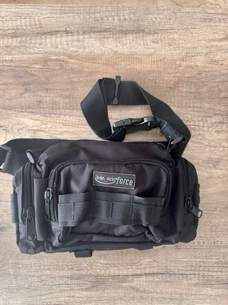 Riñonera táctica de la marca Barbaric Force. - Color negro. - Diseño con múltiples compartimentos y bolsillos. - Correa ajustable para llevar a la cintura o cruzada.