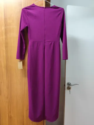 Vestido de corte cruzado con un diseño elegante y favorecedor. - Con Etiqueta, Sin Estrenar - Manga larga. - Falda con detalle drapeado y abertura. - Cremallera oculta en la espalda. - Talla S/M. - Hago Envíos. - Más cositas en mi perfil.