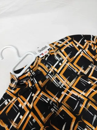 Vestido largo con un llamativo estampado geométrico. - Con Etiqueta, sin estrenar - Diseño de manga larga. - Cuello alto. - Estampado en negro, naranja y blanco. - Pone en la talla 36 pero da más talla es más bien talla única da para una SM y hasta daría para L. - Con un cinturón queda muy bonito. - Hago Envíos. - Más cositas en mi perfil.