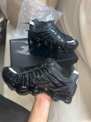 Zapatillas Nike Shox TL en color negro. - Diseño con amortiguación Shox. - Detalles reflectantes en la parte delantera y trasera. - Cierre con cordones.