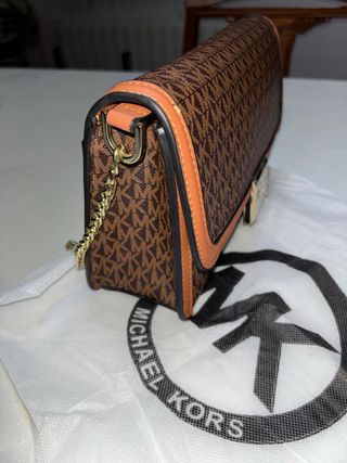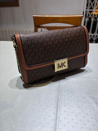 Elegante bolso de la marca Michael Kors a estrenar. - Diseño con monograma. - Ribetes en contraste. - Cadena dorada. - Detalle metálico frontal.