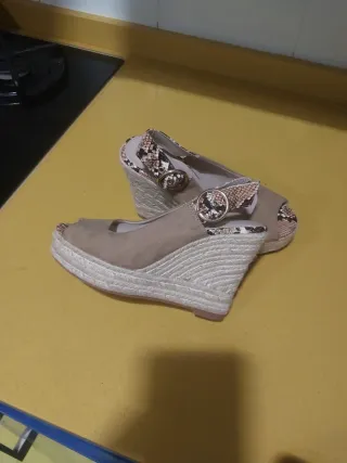 Elegantes cuñas de la marca Parfois. - Diseño abierto en la punta. - Tira con hebilla ajustable. - Plataforma forrada de esparto.