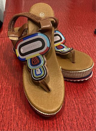 Sandalias de cuña perfectas para el verano. - Diseño con tiras adornadas con abalorios. - Cuña con acabado de esparto. - Tira elástica en el talón para mayor comodidad. -no son marca adidas