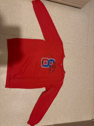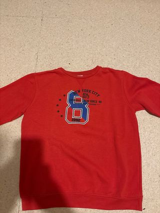 Sudadera de manga larga con un diseño llamativo en la parte delantera. - Color rojo vibrante. - Detalle de número 8 con estrellas y texto NEW YORK CITY.