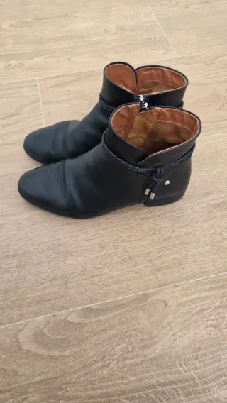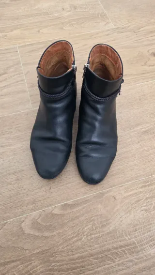 Botines de cuero negro de la marca Pikolinos. - Cierre con cremallera lateral. - Detalle trenzado en la caña. - Interior forrado en cuero.