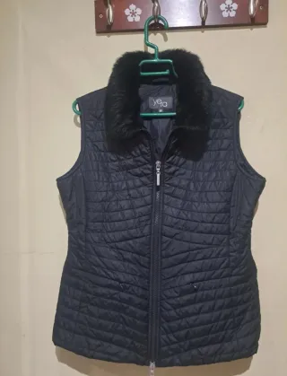 Chaleco acolchado con cuello de pelo sintético y bolsillos laterales - Diseño acolchado. - Cierre de cremallera frontal. - Cuello con detalle de pelo. Impecable