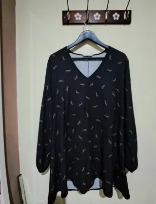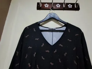Vestido de manga larga con un estampado divertido de perritos - Cuello en V. - Medidas de sisa a sisa 54 cm Largo 86 cm (6)