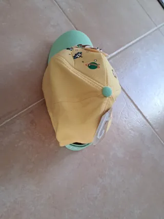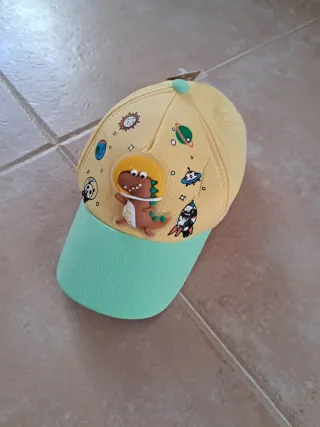 Gorra infantil con divertido diseño espacial, marca desconocida. - Estampado de dinosaurio astronauta y planetas. - Visera de color verde. - Ajustable para mayor comodidad.