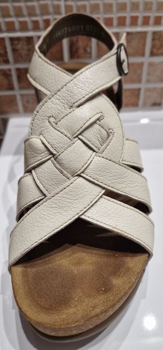 Sandalias de cuña de la marca Fly London. Modelo GOYA776FLY en color OFFWHITE. - Diseño de tiras. - Suela de goma. - Cierre de hebilla.