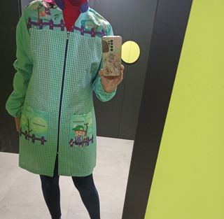 Babi para maestra o para uso infantil. Es muy cómodo: lavado y puesto. Se vende porque mi mujer ahora está en primaria y no lo usa. - Mangas largas. - Cierre de cremallera frontal. - Bolsillos delanteros. - Puños elásticos.
