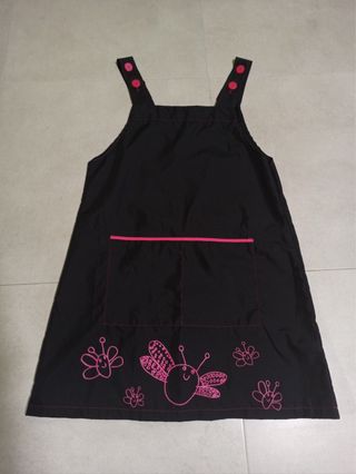 Babi o pichi para maestra de infantil original, cómodo y práctico. Se vende porque mi mujer ahora trabaja en primaria. - Color base negro. - Detalles y bordados en color rosa. - Bolsillo frontal. - Cierre con botones en los tirantes.