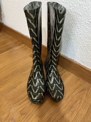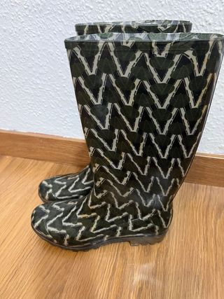Botas de agua de la marca Bimba y Lola con un diseño llamativo. - Estampado zig-zag en tonos verdes y blanco. - Caña alta. - Suela de goma.