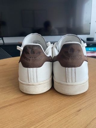 Zapatillas Adidas Stan Smith en color blanco y marrón. Compradas hace un año. - Modelo: Stan Smith - Talla: 44 2/3 Vendo por que me van algo pequeñas y voy incomodo. Cambiaria por similar pero 45 1/3 o zapatilla barefoot.