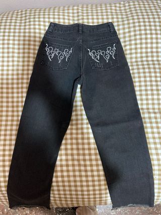 Pantalón vaquero negro con diseño de llamas