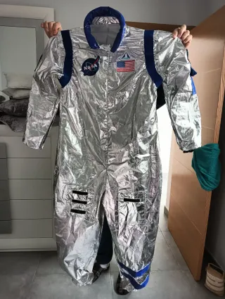 Disfraz de astronauta para adulto con un llamativo acabado plateado. - Diseño de traje espacial completo. - Incluye parches temáticos. - Cremallera frontal para facilitar su uso. - Tirantes ajustables.