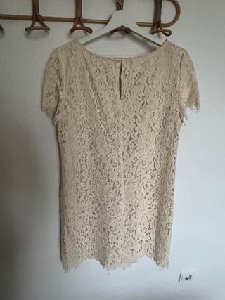 Vestido corto de encaje beige