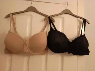 Conjunto de dos sujetadores de la marca Selene. - Un sujetador en color beige. - Un sujetador en color negro con detalles de encaje.