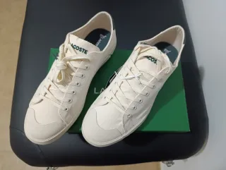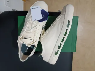 Zapatillas de lona con un diseño llamativo. - Color base beige. - Talla 41 - Detalle de cocodrilos verdes en el lateral. - Cierre con cordones. - Son nuevas a estrenar - Solo venta en persona