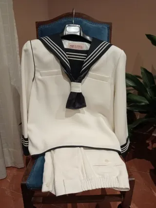 Traje de marinero blanco y negro, ideal para comunión. Talla 22. - Diseño clásico de marinero. - Incluye chaqueta y pantalón.