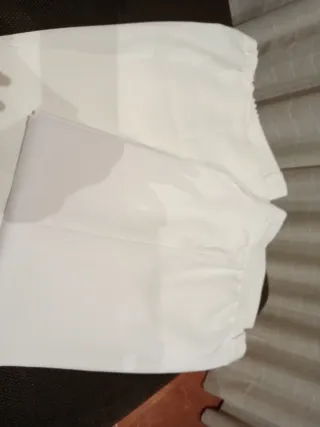 Pantalón de vestir de color blanco. - Tejido ligero y cómodo. - Cintura elástica con detalle fruncido.