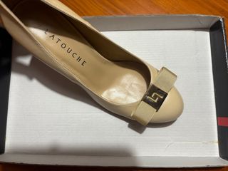 Elegantes zapatos de vestir de la marca Latouche. - Color beige. - Adorno de lazo con detalle metálico dorado en la punta. - Diseño clásico y sofisticado.