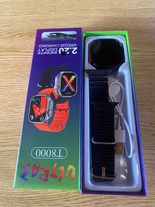 Reloj inteligente T8000 Ultra 3 con pantalla infinita y carga inalámbrica. - Pantalla de 2.20 pulgadas. - Diseño moderno y elegante.