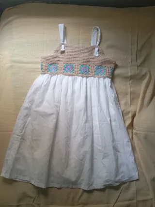 Conjunto de dos vestidos de comunión. - Diseño elegante y clásico. - Tejido ligero y vaporoso. - Detalles de encaje y puntillas. - Mangas abullonadas.