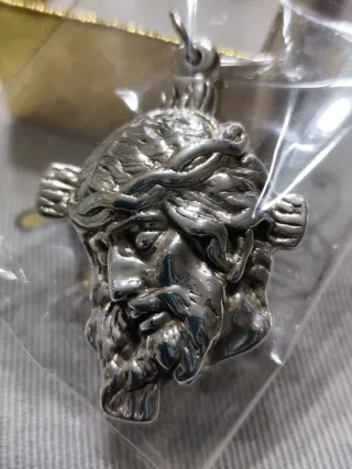 Precioso colgante con la cabeza de Cristo. - Fabricado en plata de ley 925. - Diseño detallado y elegante. Medida de 6 cm de largo.