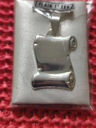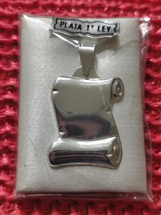 Colgante con diseño de pergamino enrollado. - Fabricado en plata de primera ley. - Detalle de Plata 1ª Ley en etiqueta. Puedes grabarlo con uno o varios nombres.